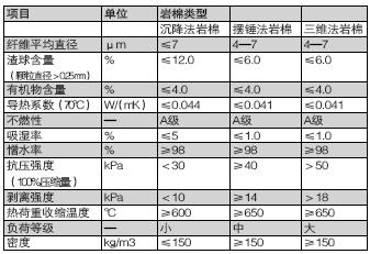 不同类型岩棉的性能特点